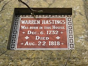Warren Hastings was born in Churchill in what is now a private house (Hastings House on Hastings Hill).
